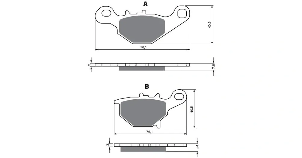 Sintrované brzdové destičky pro lehčí motocykly a běžné použití. Silniční typy mají homologaci TÜV.