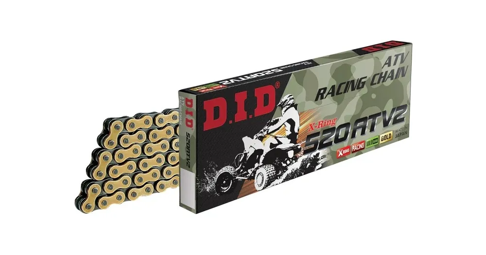 D.I.D ATV X-Kroužkový řetěz, pevnost 33,9kN, 50cc-750cc, 114 článků, zlato/černá barva, spojka FJ