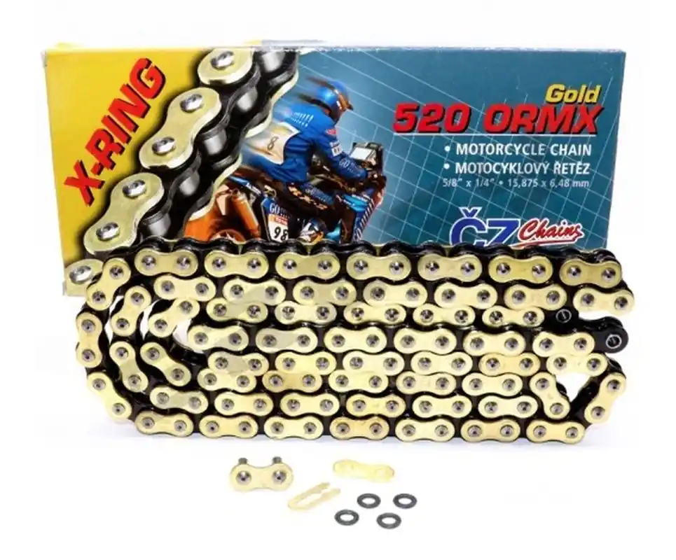 CZ hnací řetěz 520 ORMX (120 článků) ACTIVE RING (X-RING) zlatá do 600 ccm (ENDURO) (34,5 KN) + spona Aktuální
