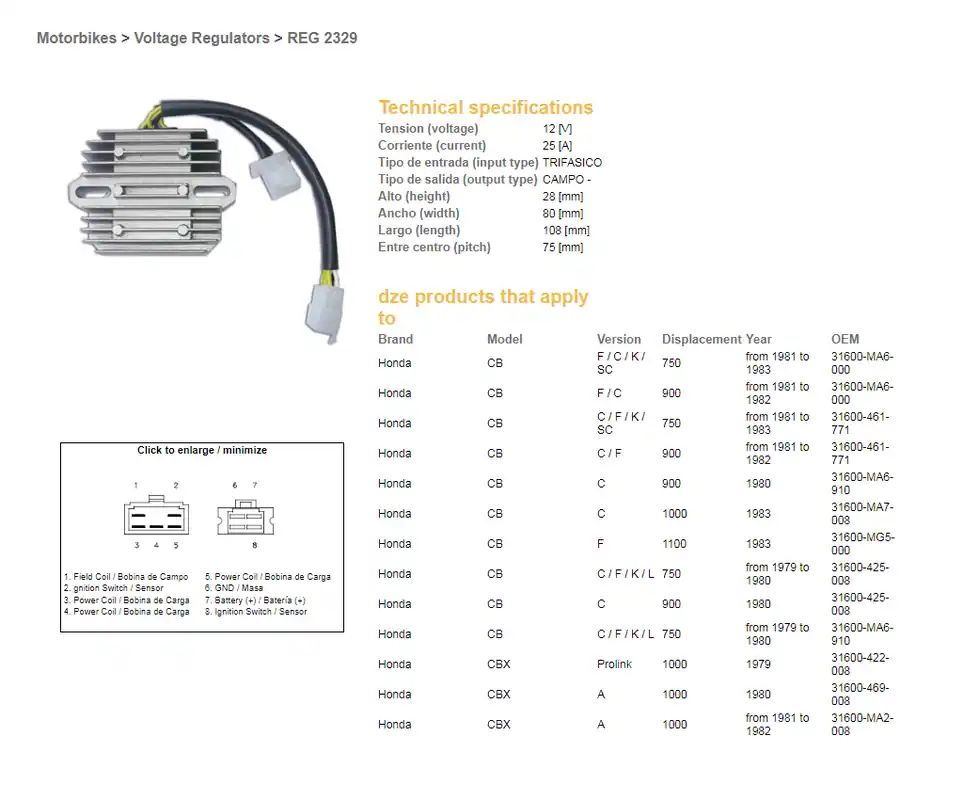 Kompletní specifikace KompatibilitaDíl DZE regulátor napětí HONDA CB 750F/C/K 81-83; CB 900 81-82; CB 1000 83; CBX 1000A 81-82 (OEM-31600-MA6-000) (ESR210) (31600-461-771) je vhodný pro: