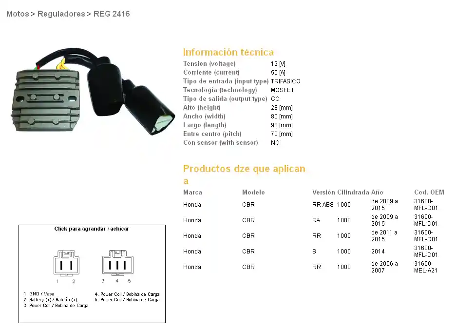DZE regulátor napětí HONDA CBR 1000RR FIREBLADE 04-15 (50A) (31600-MFL-D01; 31600-MEL-A21) (ESR680;ESR439) Cenově Výhodný