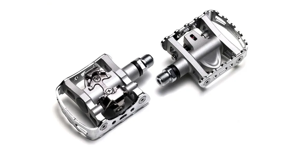 Univerzální pedály vhodné pro každodenní jízdu na kole, z jedné strany SPD a z druhé klasický pedál umožňující použití běžné obuvi.