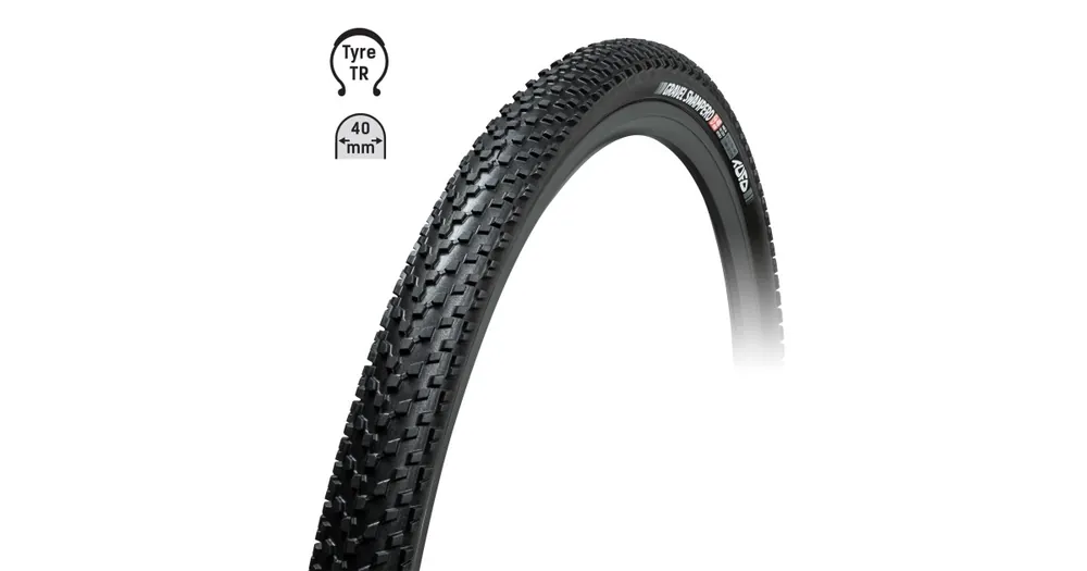 Bezdušový gravel plášť TUFO Swampero (Tubeless Ready). Směrový šípový vzorek dezénu, dobré odvalování, výborná přilnavost a samočistící vlastnosti.