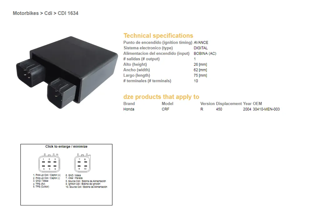 Nejlepší Cena DZE jednotka zapalování CDI HONDA CRF 450R 04 (30410-MEN-003)