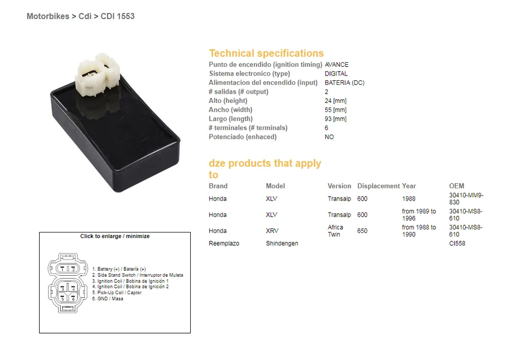 Nejprodávanější DZE jednotka zapalování CDI HONDA XL 600V TRANSALP 89-99; XRV 650 AFRICA TWIN 88-00 (30410-MS8-610)