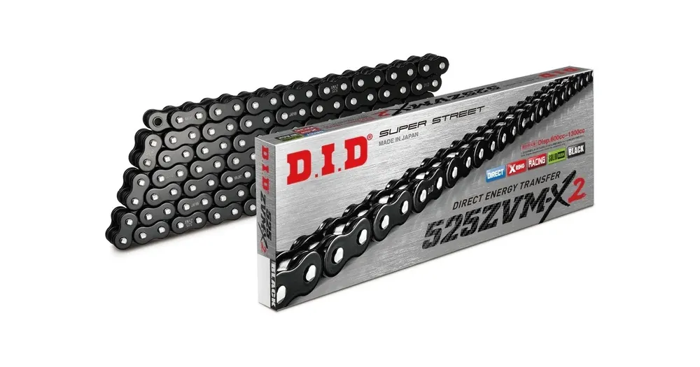 D.I.D ŘETĚZ 525ZVM-X2 Řada D.I.D ZVM-X využívá naše patentované těsnění X-Ring, má větší pevnost než řada VX a je určena pro těžké motocykly s obrovským točivým momentem a výkonem. Kroužek X-Ring® díky svému kroucení zvyšuje těsnicí výkon a jeho čtyři kontaktní body minimalizují ztráty výkonu. Přím…