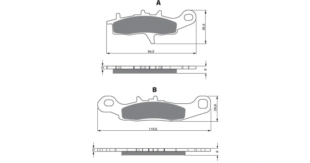 Sintrované brzdové destičky pro lehčí motocykly a běžné použití. Silniční typy mají homologaci TÜV.