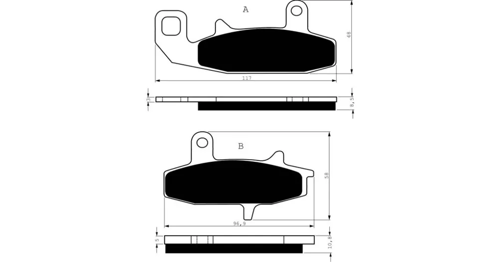 Sintrované brzdové destičky pro lehčí motocykly a běžné použití. Silniční typy mají homologaci TÜV.