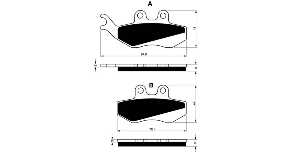 Sintrované brzdové destičky pro lehčí motocykly a běžné použití. Silniční typy mají homologaci TÜV.
