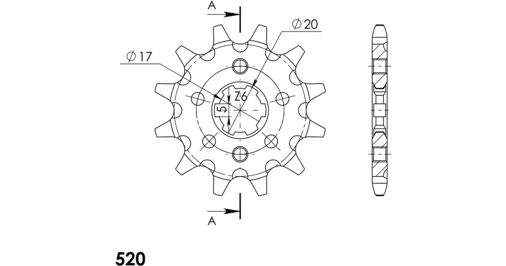 Pevnější zuby = vyšší životnost řetězové sady až o 10%. Kolečko 13z, řetěz 520.