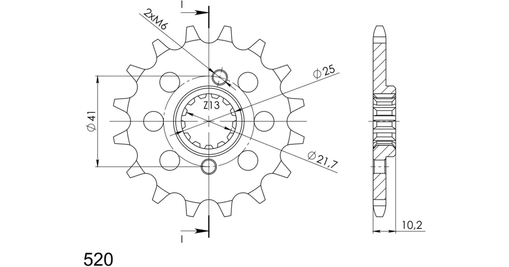 Pevnější zuby = vyšší životnost řetězové sady až o 10%. Kolečko 16z, řetěz 520.