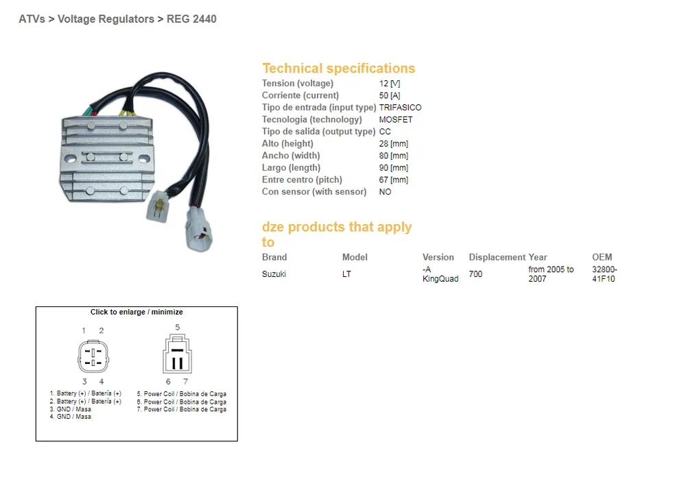 Vrácení Zdarma DZE regulátor napětí SUZUKI LT-A 700 KING QUAD 05-07 (32800-41F10) MOSFET (50A)